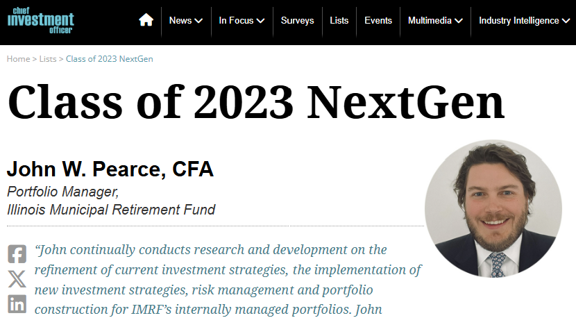 I was named as a “rising star” by Chief Investment Officer magazine in its Class of 2023 NextGens. I provided responses to six questions that were later published.