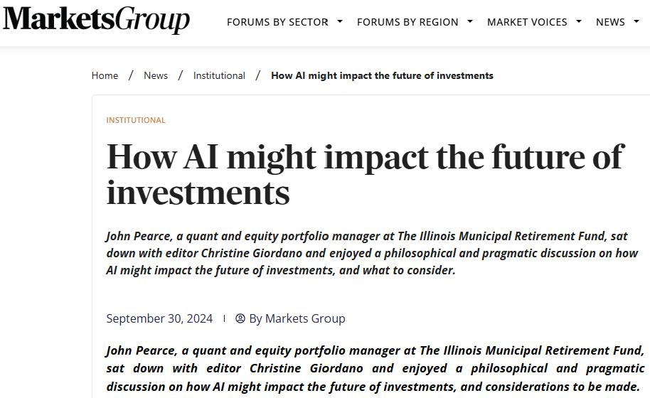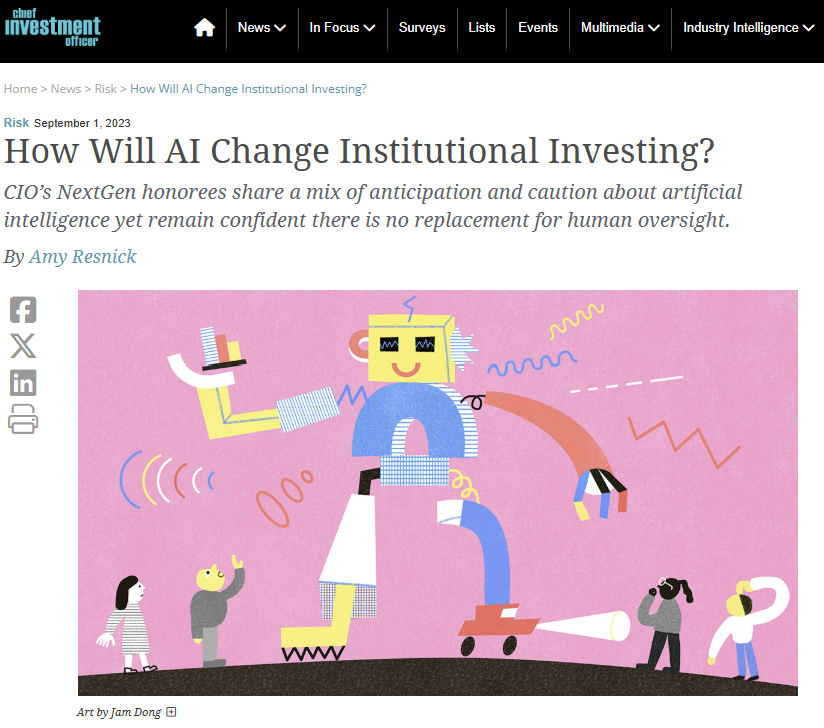 I was quoted by Chief Investment Officer magazine an article on the impact of AI in Institutional Investing.